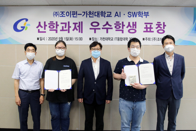 또 '조이펀'에서 인턴으로 참여한 신재원, 윤승일 학생도 우수한 성과를 보여 기업으로부터 표창을 받기도 했다. 정상권 조이펀 대표는 “두 학생이 산학과제를 수행하는 동안 뛰어난 역량과 성실성을 보여줘 가천대에 표창을 제안했다”며 “소프트웨어전공 학생들이 산업계에서 큰 역할을 할 것으로 기대한다.”고 말했다.