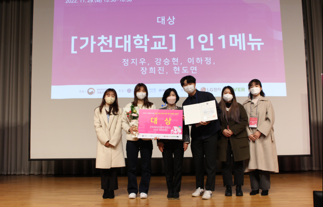 가천대학교 AI.소프트웨어학부 대학원생(자연어처리연구실, 지도교수 강상우)과 학부생들로 구성된 2개팀이 ‘2022 인공 지능 언어 능력 평가 대회’에서 1등(대상, 문화체육부장관상)과, 2등(국어원장상)을 수상하였다. 자연어처리연구실 팀은 2017년, 2020년 대상(장관상), 2019년, 2021년 (국립국어원장상) 수상에 이어 올해에도 뛰어난 성적을 거두었다.‘2022 인공 지능 언어 능력 평가 대회’는 문화체육관광부와 국립국어원 주최로 올해는 ‘사람의 마음을 이해하는 인공 지능의 언어 능력’을 주제로 속성 기반 감성 분석 과제를 해결하는 모델을 개발하는 대회로 개최되었다. 지난 9월 16일을 시작으로 약 두 달간 국립국어원 모두의 말뭉치를 통해 대회를 진행하였으며, 210명의 참가자가 총 7,468건의 작품을 제출하였다. 참가팀들은 ‘국립국어원 속성 기반 감성 분석 말뭉치’를 대상으로 상품 후기에 나타나는 작성자의 상품에 대한 긍정 또는 부정 판단을 탐지하는 과제를 통해 인공 지능의 언어 능력을 평가받았다.수상자는 총 7팀으로 대상(문화체육관광부 장관상) 1팀, 금상(국립국어원장상) 1팀, 은상(국립국어원장상) 1팀, 동상(국립국어원장상) 2팀, 특별상 2팀(엔씨소프트 특별상, 케이티융합기술원 특별상)이다. 문화체육관광부 장관상인 대상은 가장 높은 점수를 받은 ‘가천대학교 1인 1메뉴’ 팀(학부생 정지우, 장희진, 현도현, 이하정, 대학원생 강승현)이 수상하였으며, 2등(금상)은 ‘지시유(GCU) 텀프 지옥’ 팀(학부생 류상연, 김주형, 김예찬, 한성구, 대학원생 김균엽, 이승수, 모윤호)이 수상하였다. 수상자는 엔씨소프트, 케이티, 엘지전자, 네이버 등의 후원 기업에 입사 지원 시 채용 전형에서 우대를 받을 수 있다.