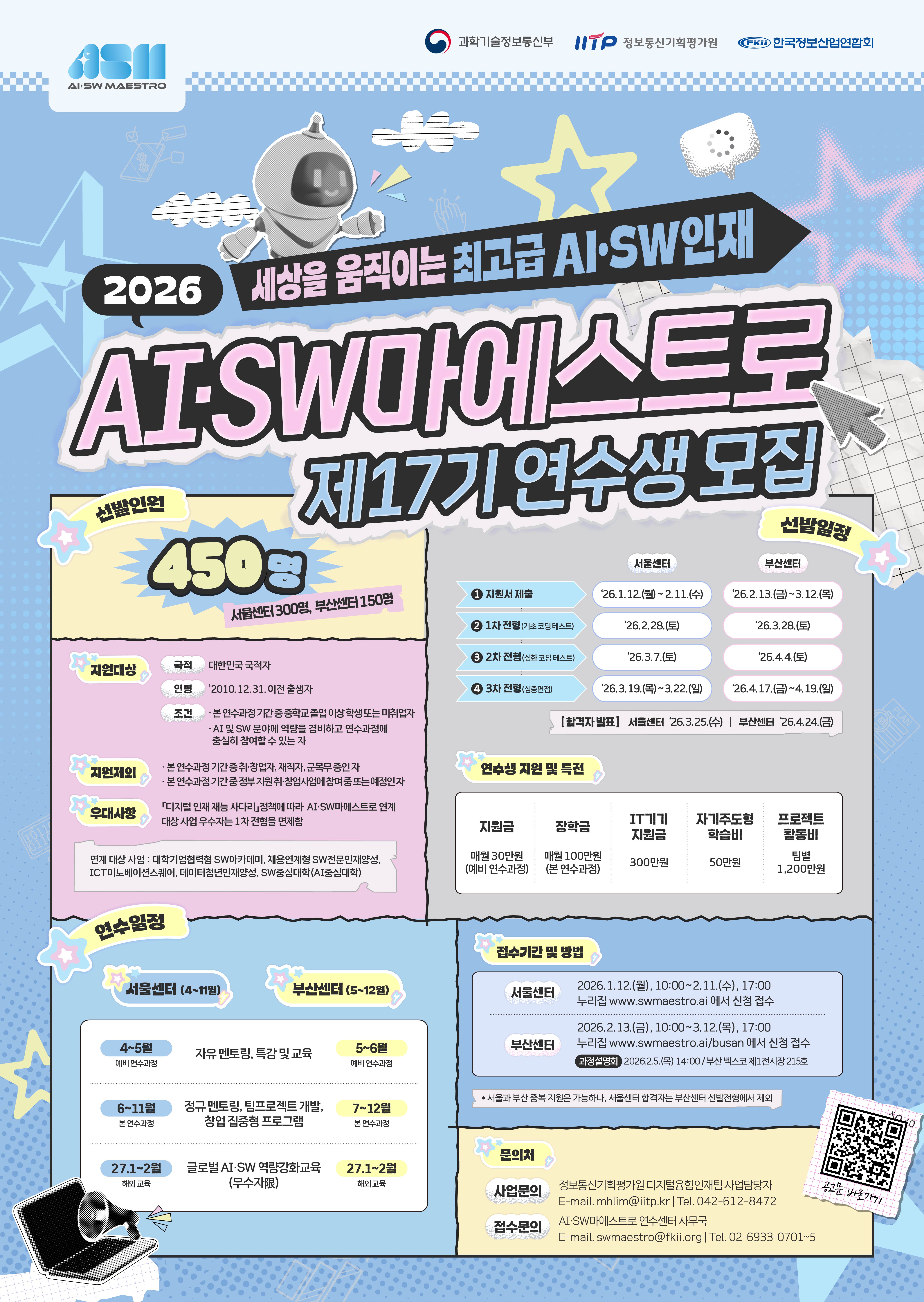 2026년도 AI·SW마에스트로 제17기 연수생 모집 안내